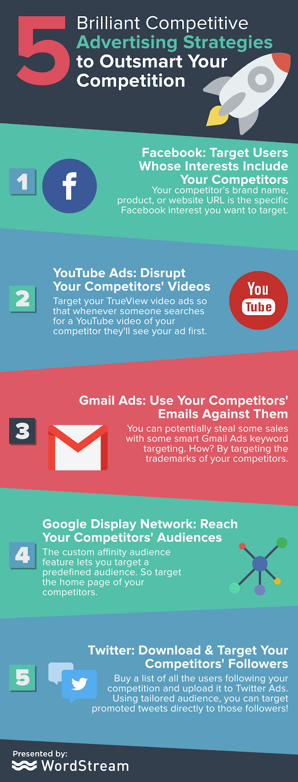 Here’s an example of an infographic by WordStream on advertising strategies to outsmart your competition.