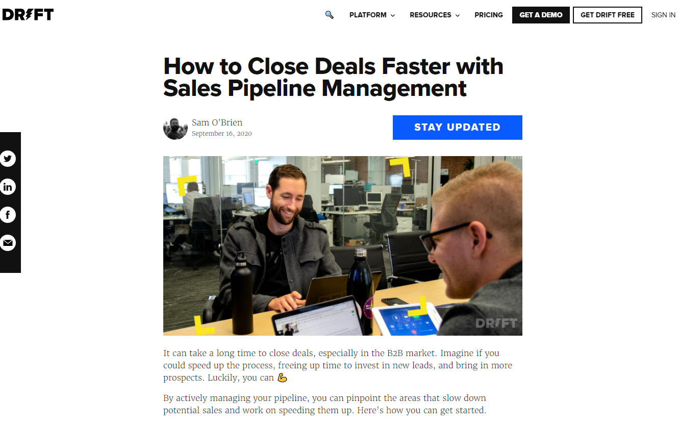 Here’s an example of an engaging B2B blog by Drift. Their blog posts offer actional advice while being easy-to-read and conversational in nature.