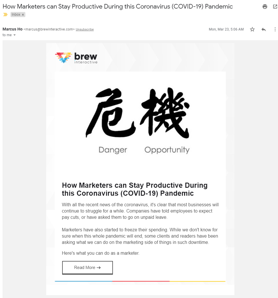 Take a look at an example of our email newsletter that promotes a newly published blog post and encourages subscribers to read it.