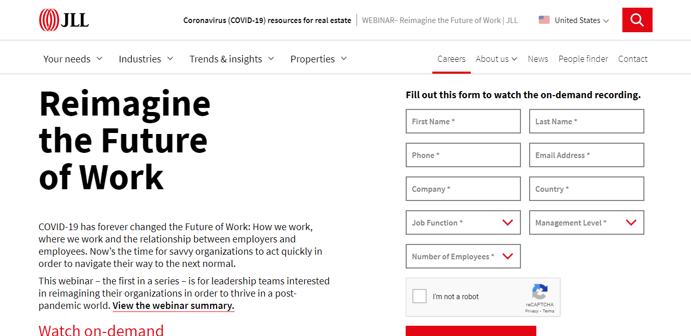 Here’s an example of a webinar by Jones Lang LaSalle (JLL) on reimagining the future of work after COVID-19.
