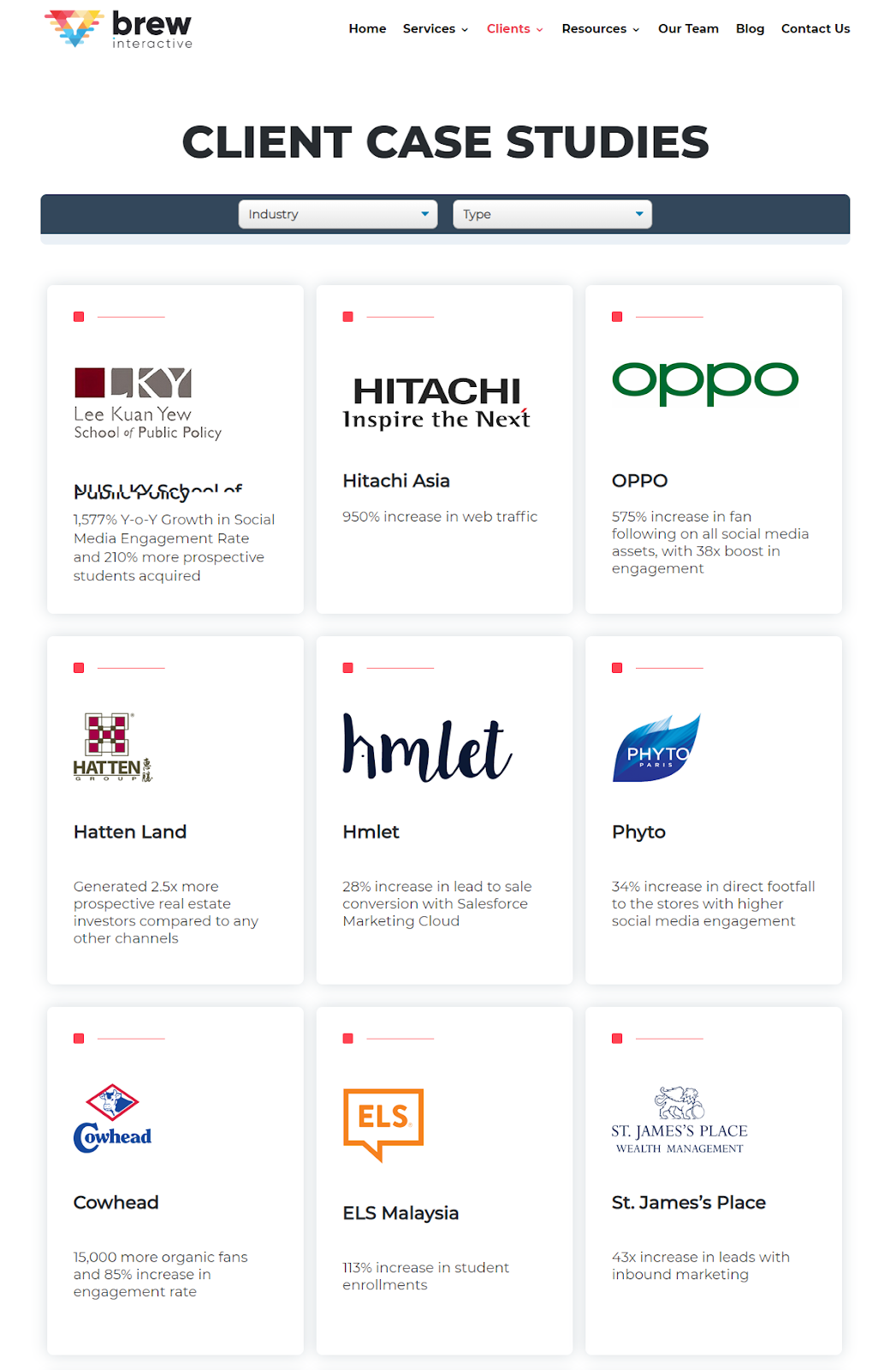 Here’s a snippet from our client case studies page. You can click on the individual success stories to get a comprehensive understanding of how we helped our clients with their marketing efforts.