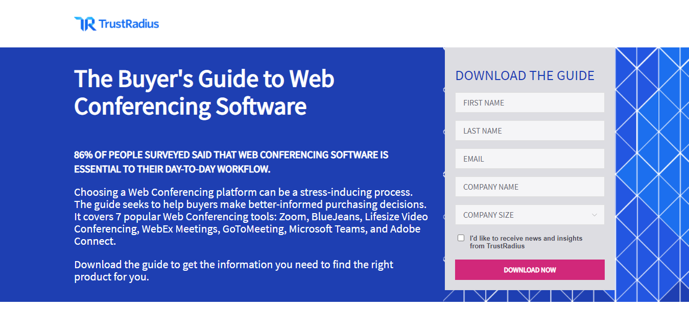 Here’s an example of a product guide by TrustRadius that educates readers on how they can find the right web conferencing software.
