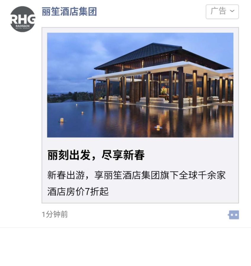 WeChat moment advertising is similar to advertising on Facebook’s News Feed. They appear amidst posts from friends and family. The only difference is that they have a small call-out on the upper right corner, indicating an advertisement.