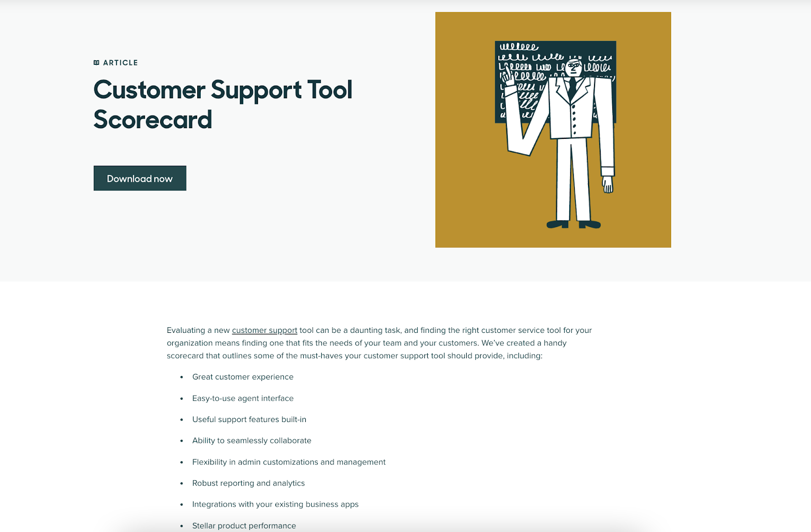 The second is a customer support tool scorecard. It’s a self-assessment tool that helps prospects understand how well their customer support team is doing and how they could improve.