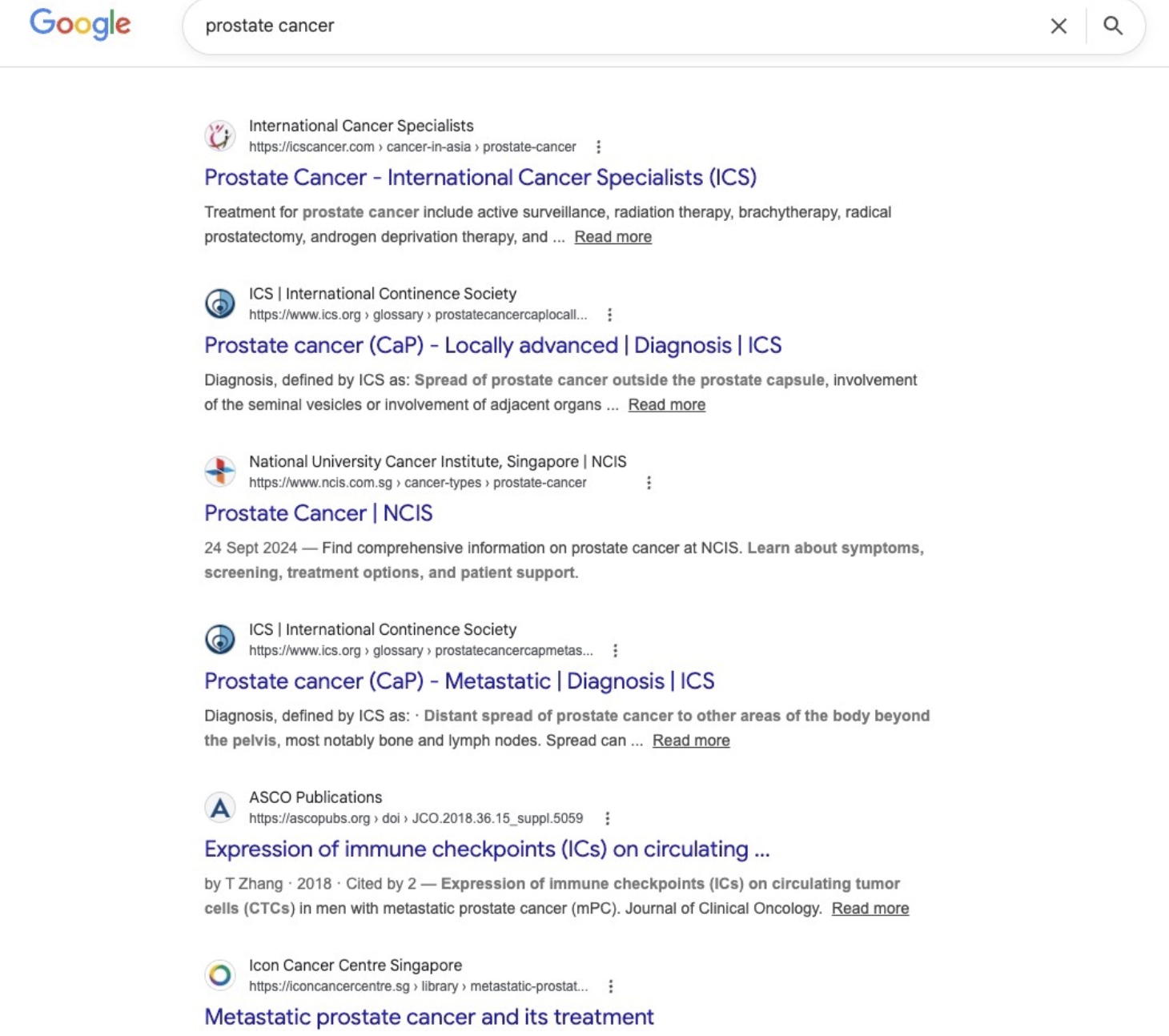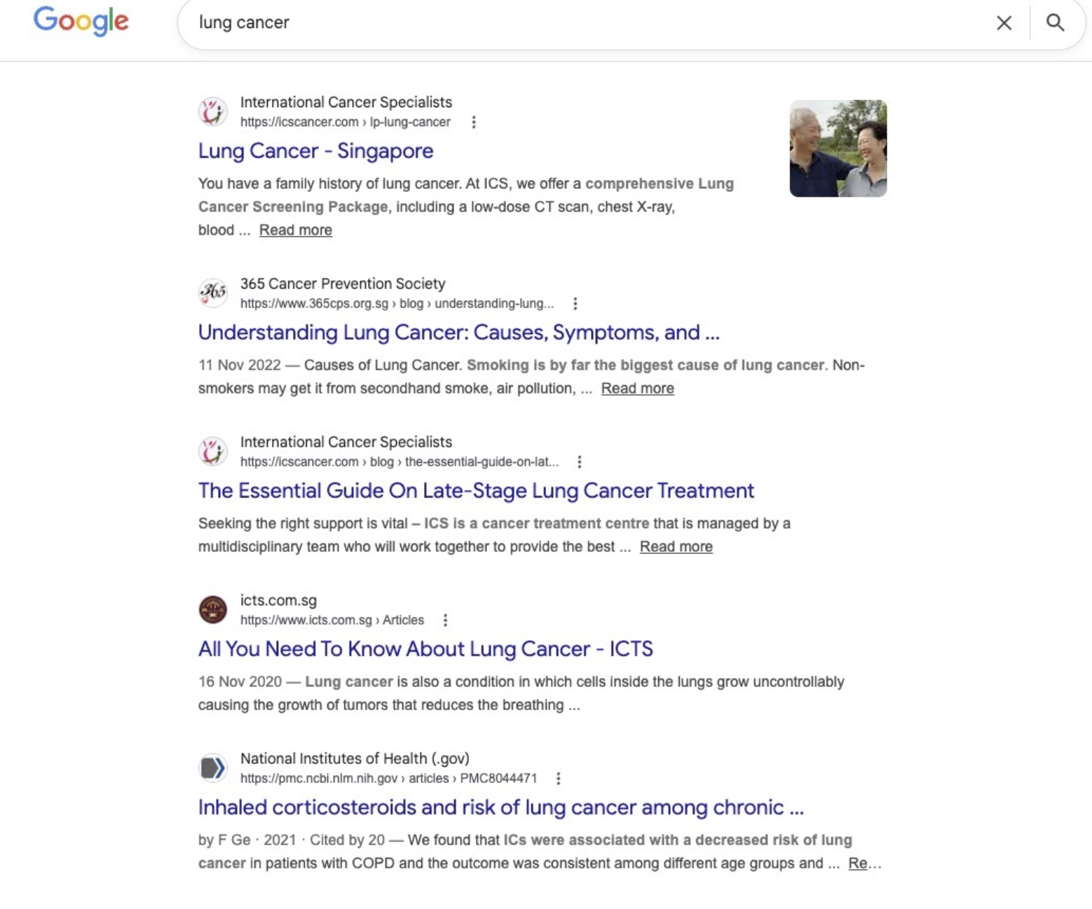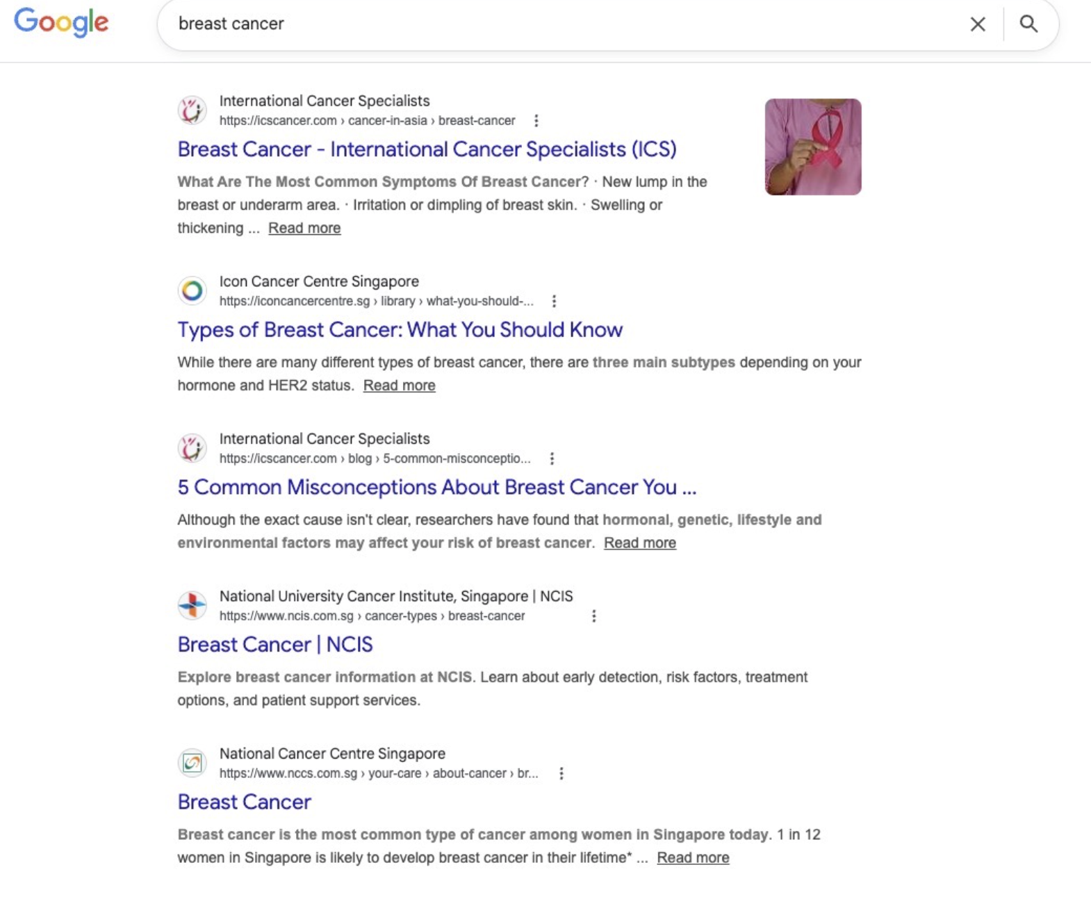 Despite strong credentials and trusted medical leadership, ICS struggled to compete in Singapore’s highly saturated cancer treatment market, where several established competitors had already secured dominant digital visibility and brand recognition.