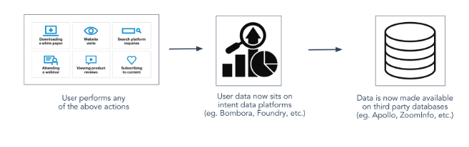 Intent data refers to information collected from users’ online activities that indicates their likelihood of engaging with certain topics or making a purchase decision.