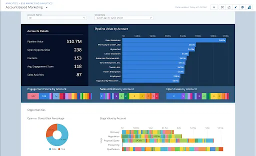 An example of a visual dashboard of an accounts-based marketing and sales optimization plan in which marketing automation campaigns are highly personalized based on account vertical, type and size