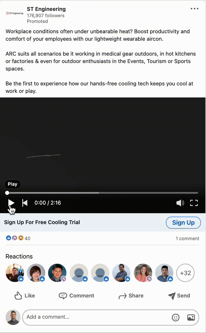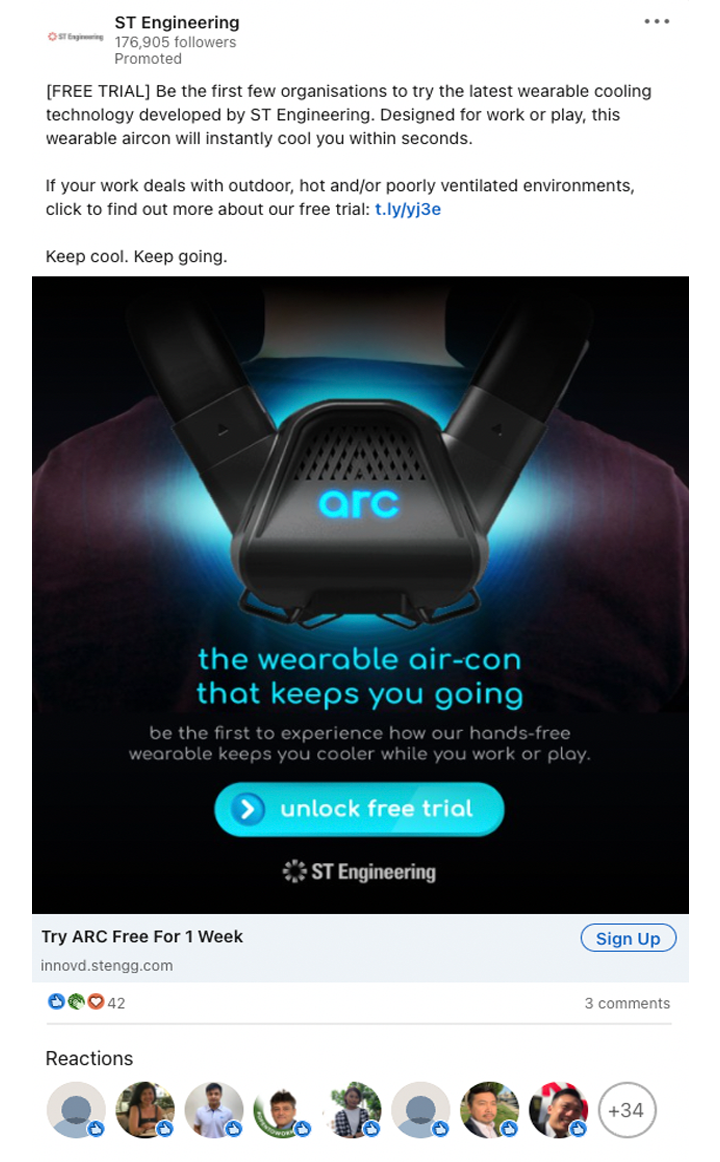 LinkedIn’s powerful platform allowed us to put ARC right in front of decision makers at ST Engineering’s target audiences. Here we appealed to managers and business owners by focusing on workplace conditions and productivity.